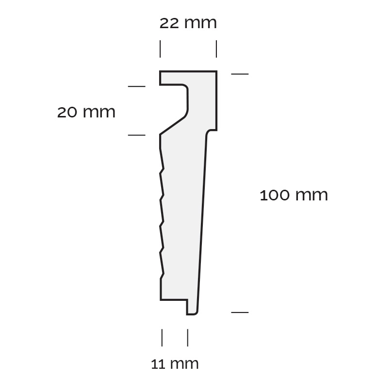- Eine Sockelleiste aus strapazierfähigem Polyurethan, das eine hohe Widerstandsfähigkeit und Langlebigkeit garantiert. Sie ist eine ausgezeichnete Wahl, die den Produkten aus Polystyrol, das zu Rissen neigt, überlegen ist.