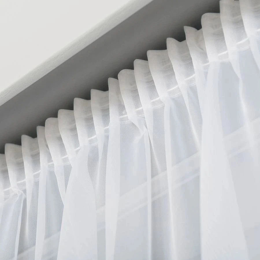 - Der Voile-Stoff ist luftig und dünn, deshalb passt er gut und lässt sich drapieren, knittern und feststecken, um eine schöne und originelle Fensterdekoration zu schaffen.
