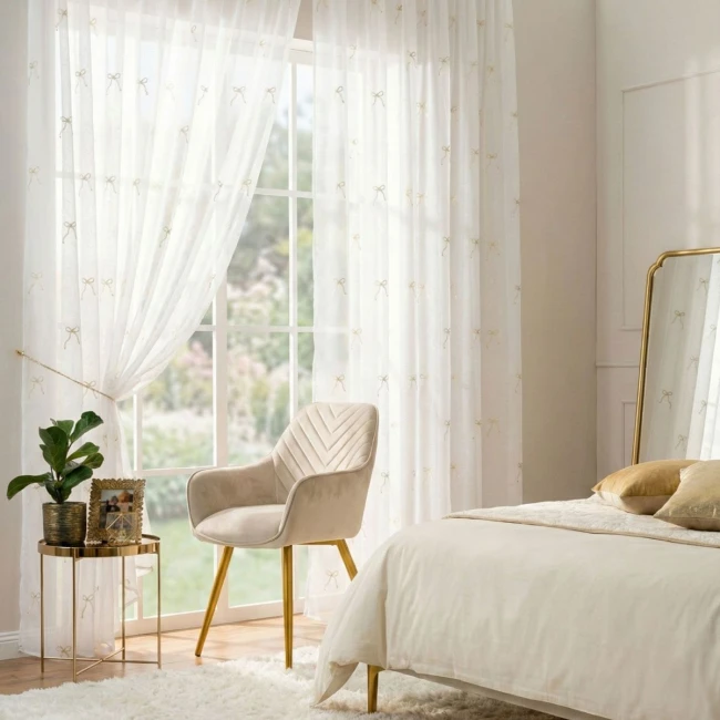 - Gardinen eignen sich ideal für das Wohnzimmer, das Zimmer oder das Schlafzimmer. Dort verleiht er dem Innenraum Leichtigkeit und Eleganz, sorgt für Privatsphäre und lässt gleichzeitig ausreichend Tageslicht in den Raum.