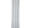 Fertige Gardine aus weißem Etamin mit feiner, kleiner Struktur, unten mit Bleiband abgeschlossen. Verziert mit dekorativen silbernen Schleifen mit funkelnden Strasssteinen. Die subtilen Verzierungen verleihen ihr einen besonderen Charakter.