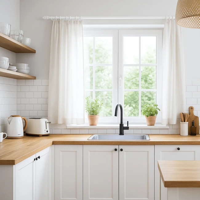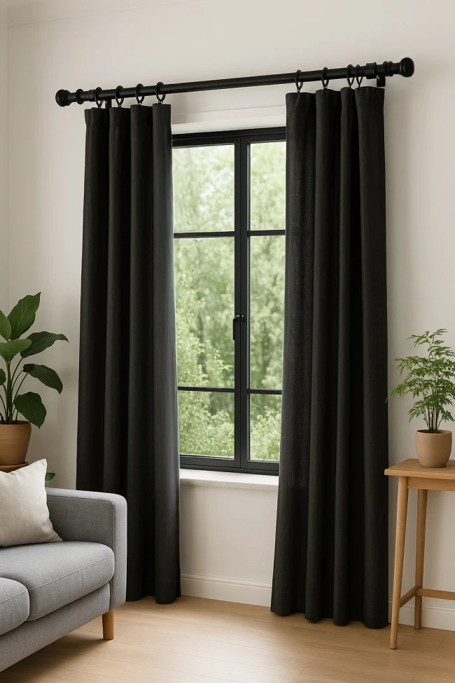 Die Länge, die Sie in den Produktoptionen wählen, bezieht sich auf die Länge der Stange selbst. Wenn dekorative Enden angebracht werden, verlängern sie die Gesamtlänge der Gardinenstange auf jeder Seite um jeweils 5 cm (insgesamt 10 cm).