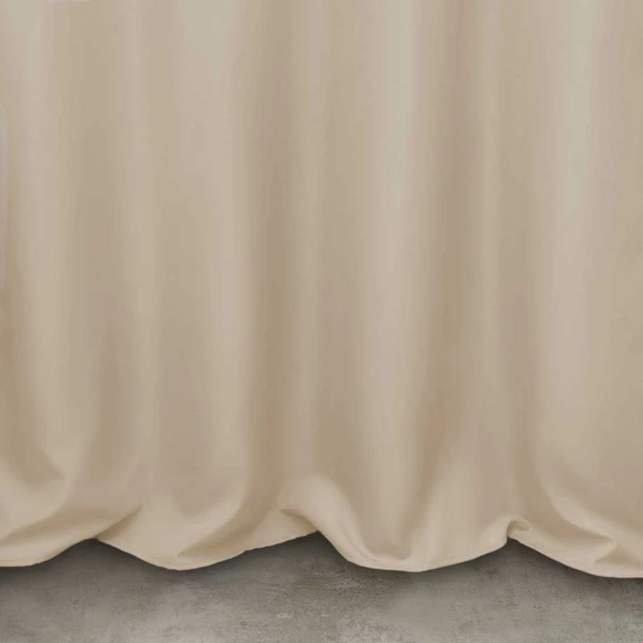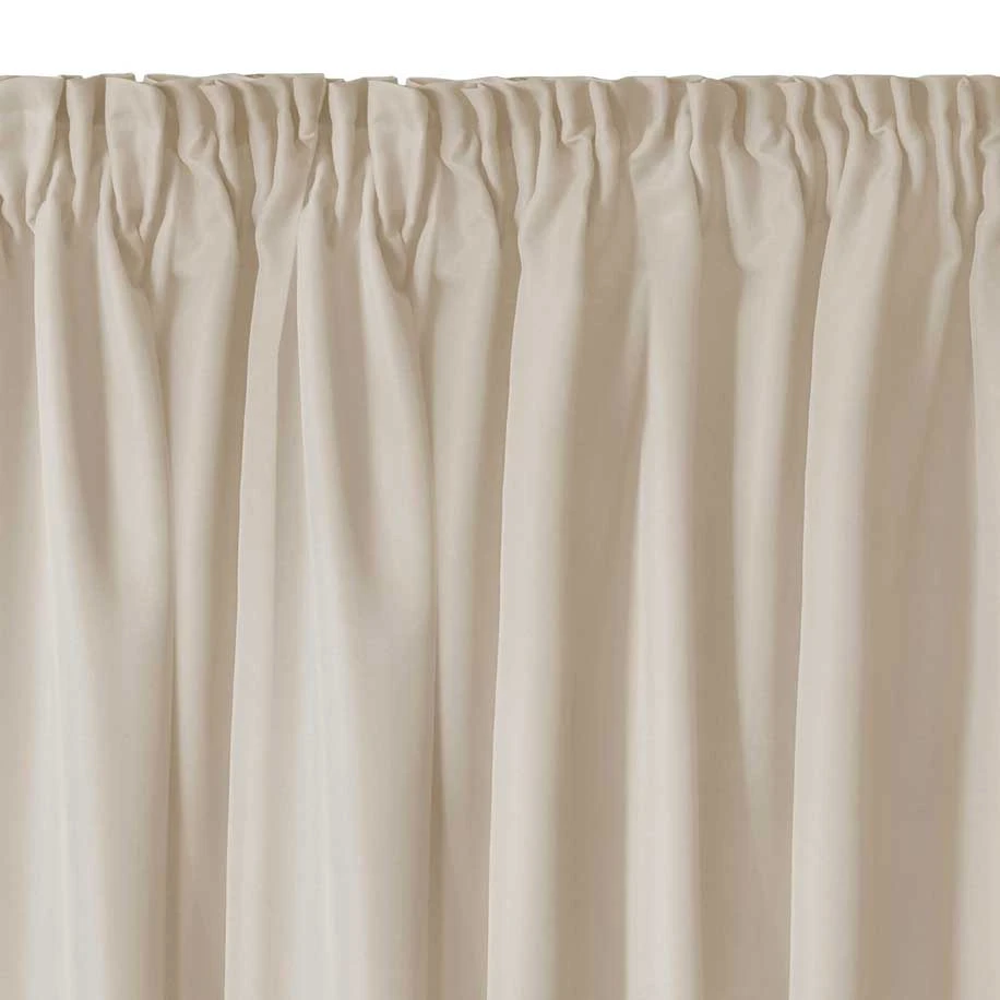 • Der Vorhang ist aus hochwertigem Stoff gefertigt, mit einem eingenähten Faltenband am oberen Ende des Vorhangs und einem Tunnel für eine Rohrvorhangstange