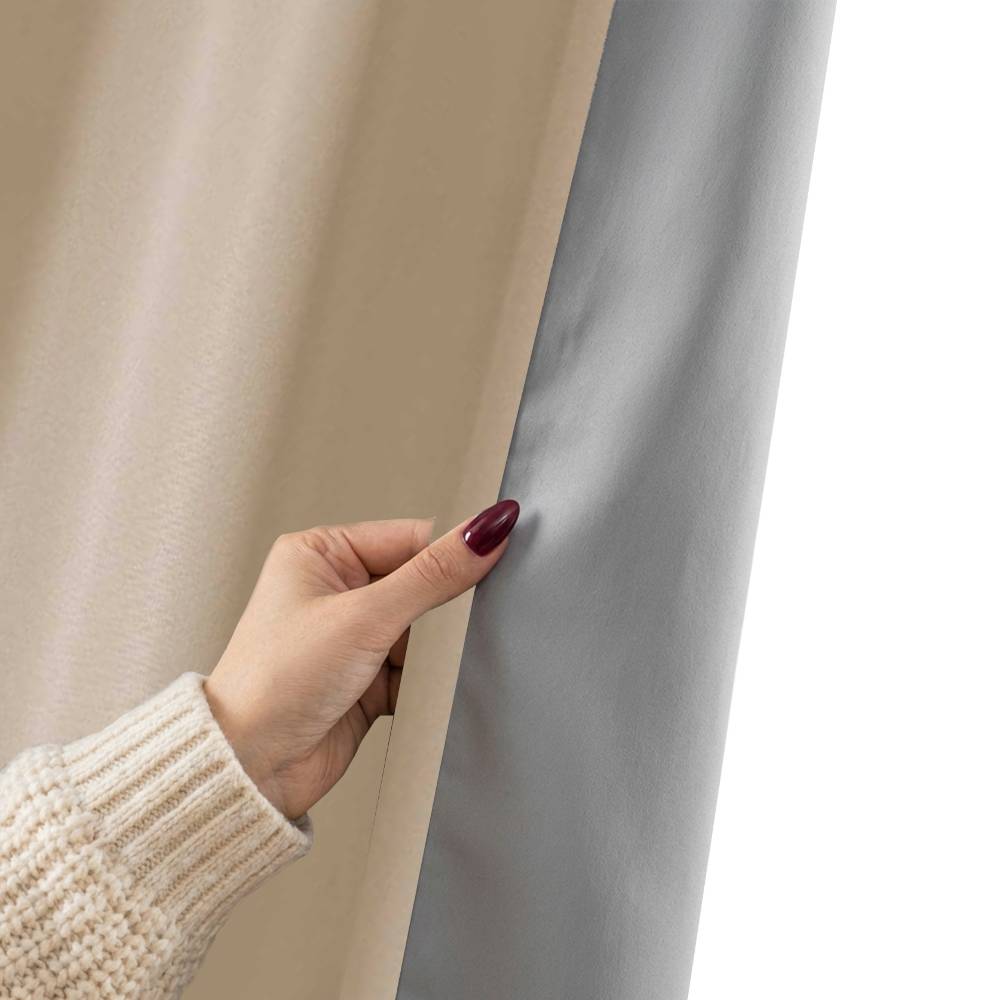 • Der Vorhang verfügt auf der Fensterseite über eine silberne Thermobeschichtung.